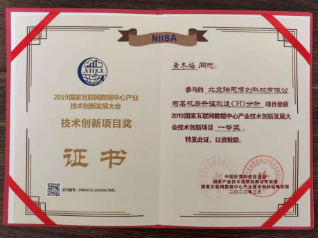 2019 年 荣获国家互联网数据中心技术创新项目奖(一等奖)